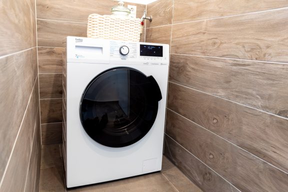 Premium-Waschtrockner (praktisch für längere Aufenthalte).
