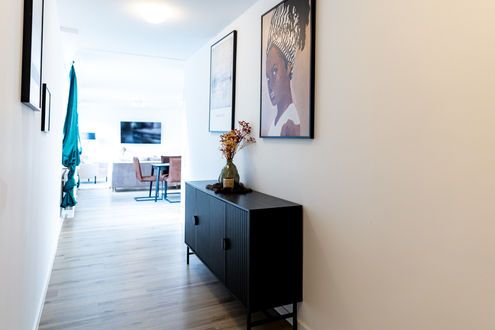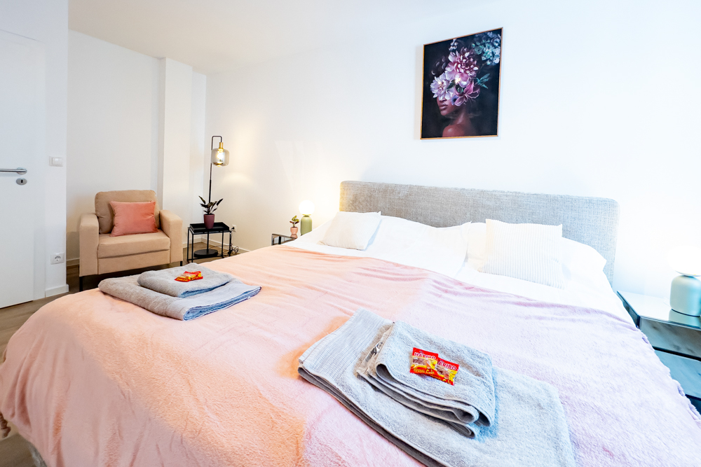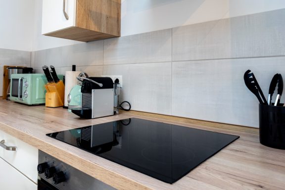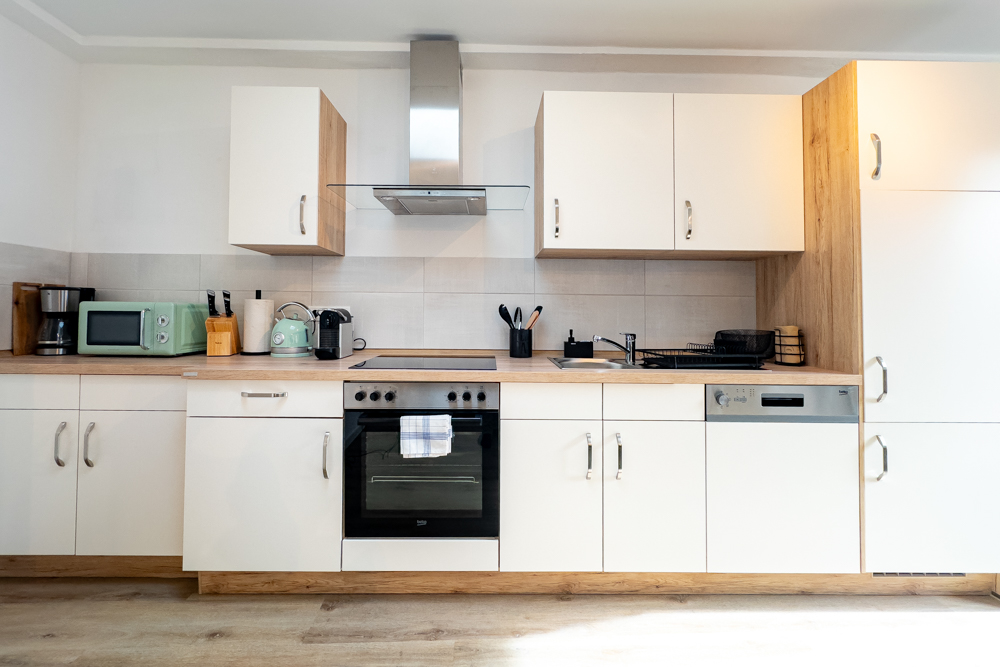 Die Ausstattung ist auf Alltagstauglichkeit und Wohlbefinden ausgelegt: Eine voll ausgestattete Küche erlaubt Selbstverpflegung — vom schnellen Frühstück bis zum gemeinsamen Abendessen nach einem Erkundungstag. Ein Premium-Waschtrockner, hochwertige Bettwäsche, frische Handtücher sowie ein kleines Care-Set sorgen dafür, dass Sie sich sofort wie zuhause fühlen. Für Entspannung und Unterhaltung steht ein Smart-TV bereit, während das schnelle WLAN Arbeit oder Streaming problemlos ermöglicht.