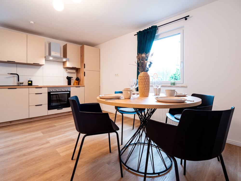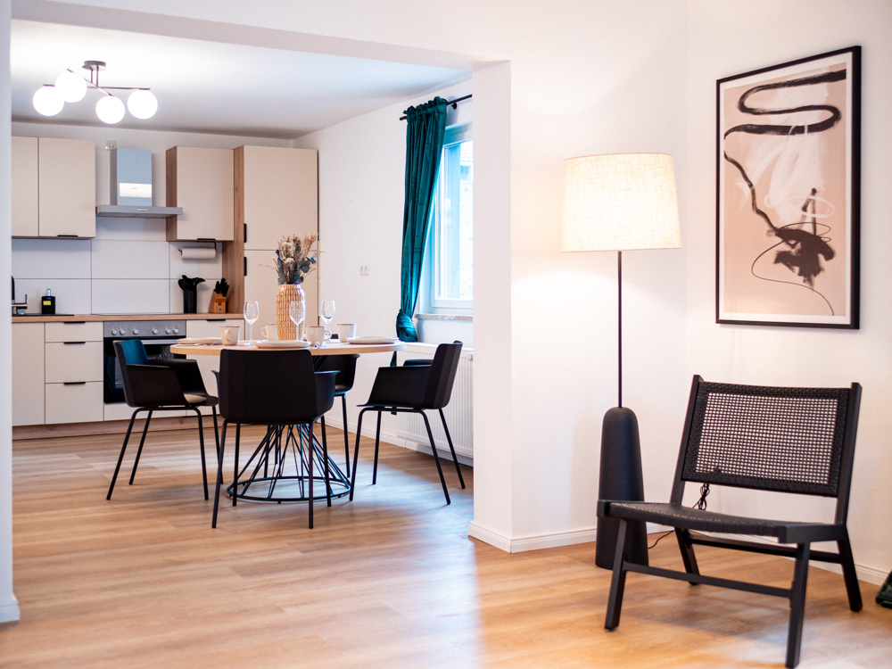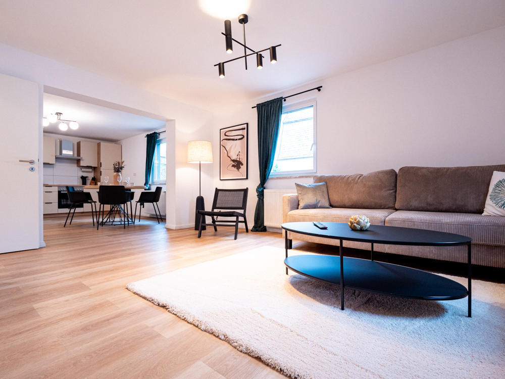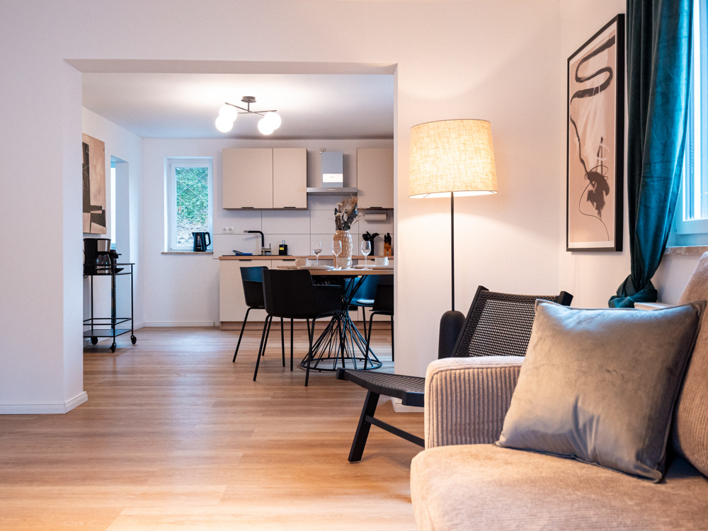 Die Ausstattung wurde bewusst auf Alltagstauglichkeit und Wohlgefühl ausgelegt: ein offener Wohn- und Essbereich mit großem Smart-TV (Streaming, z. B. Netflix) sowie schnellem WLAN lädt zu entspannten Filmabenden oder produktiven Arbeitstagen ein. Die voll ausgestattete Küche mit Nespresso-Maschine, Herd, Backofen und sämtlichen Kochutensilien ermöglicht es Ihnen, nach einer Weinprobe oder Wanderung in der Ahrregion gemütlich zu kochen. Premium-Bettwäsche, frische Handtücher und ein kleines Willkommens-Care-Set sorgen für zusätzlichen Komfort.