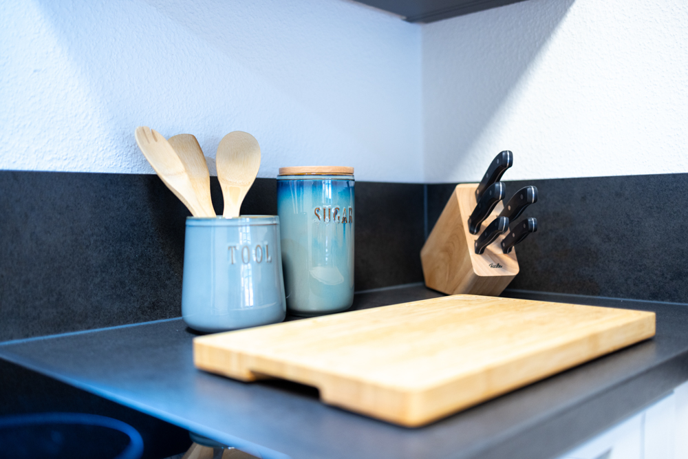Geschirr, Besteck, Töpfe, Pfannen und Grundausstattung.