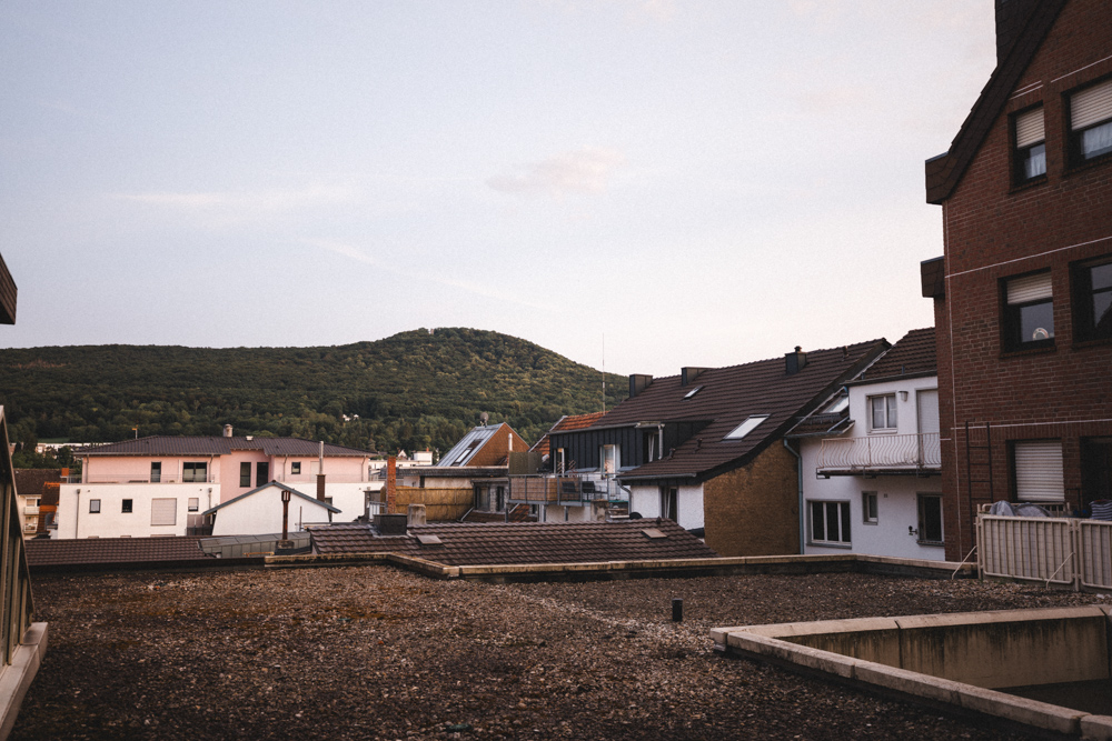 Großer Balkon / Terrasse mit Stadt- und Weinbergblick.