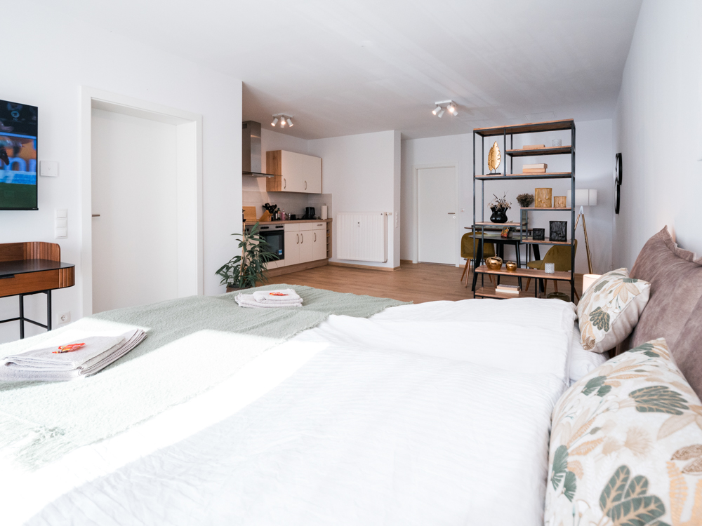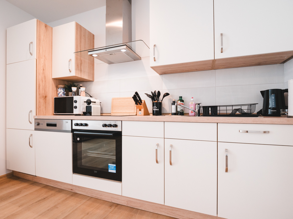 Praktisch ausgestattet ist die Ferienwohnung ebenfalls: Die voll ausgestattete Küche inklusive Nespresso-Maschine lädt zu gemeinsamen Mahlzeiten ein, während der Premium-Waschtrockner und die bereitgestellten Pflegeartikel (Handtücher, Duschgel, Shampoo) längere Aufenthalte komfortabel machen. Ein großer Smart-TV mit Streaming-Zugang sowie schnelles WLAN runden das Technik-Setup ab — ideal für entspannte Abende oder das Arbeiten von unterwegs.